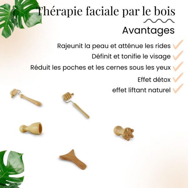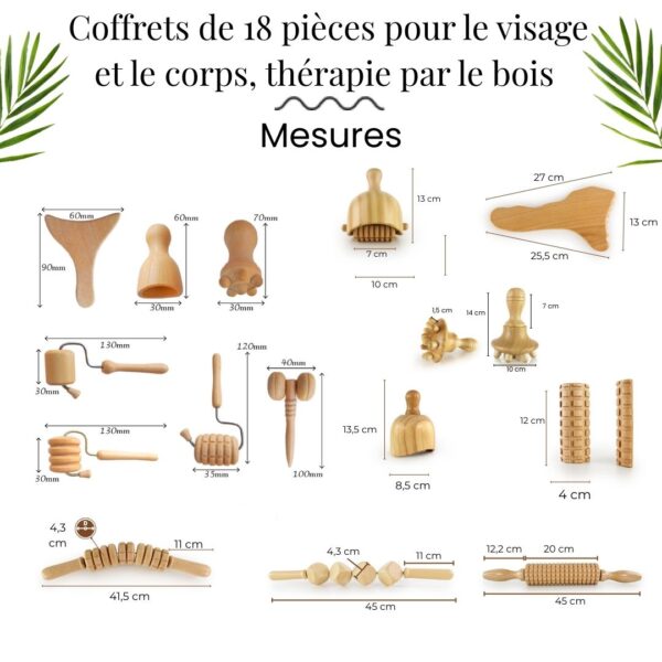 - Le kit thérapeutique anti-cellulite en bois contient 5 éléments.