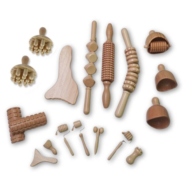 Si eres amante de la Maderoterapia en todas sus facetas, este es tu pack de 3 kits en Maderoterapia corporal, anticelulítica y facial con el que puedes aplicar todas las técnicas y tratamientos para conseguir los mejores resultados, los elementos están fabricados en madera de pino y loto natural y diseñados por Maderoterapia Estética España®.